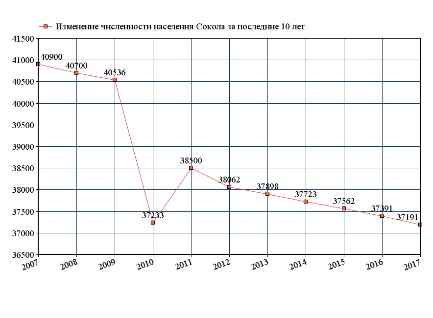 Grafikteki veriler, nüfusun 2007'de 40.900 kişiden 2017'de 37.191 kişiye istikrarlı bir düşüş gösterdiğini gösteriyor.